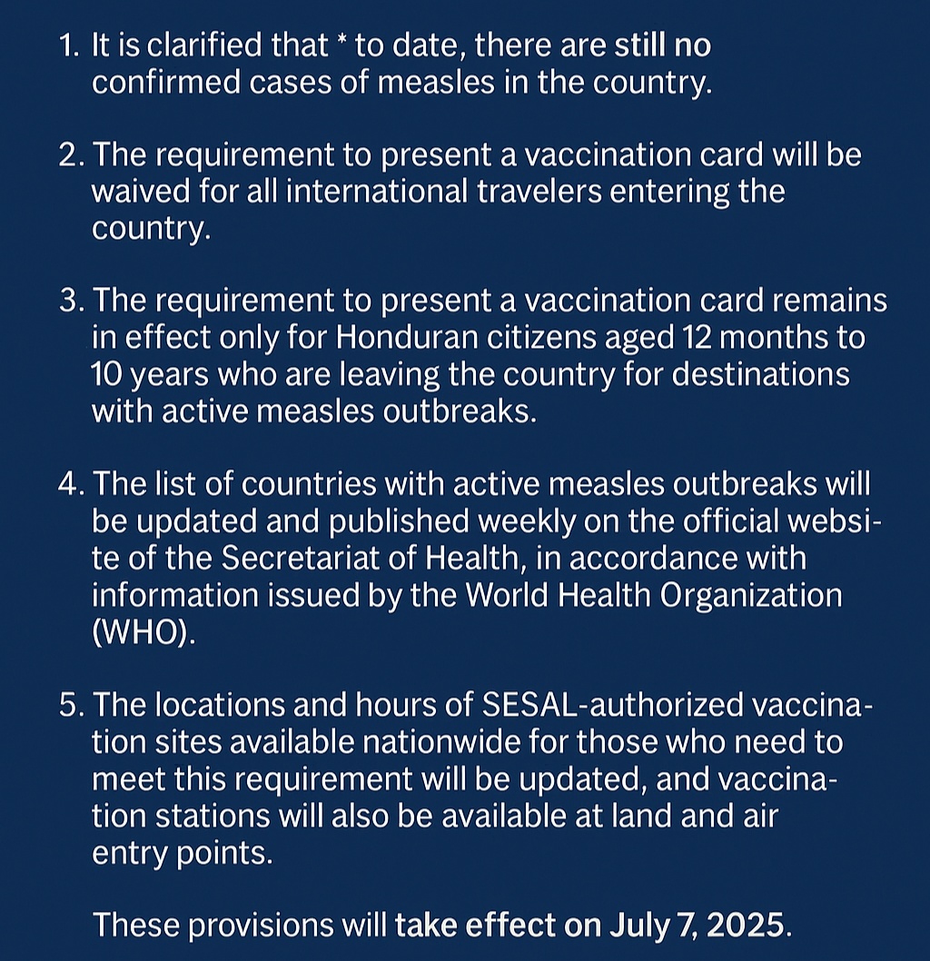 GREAT NEWS! The measles vaccination requirement for entering Honduras will be waived. See more information below.