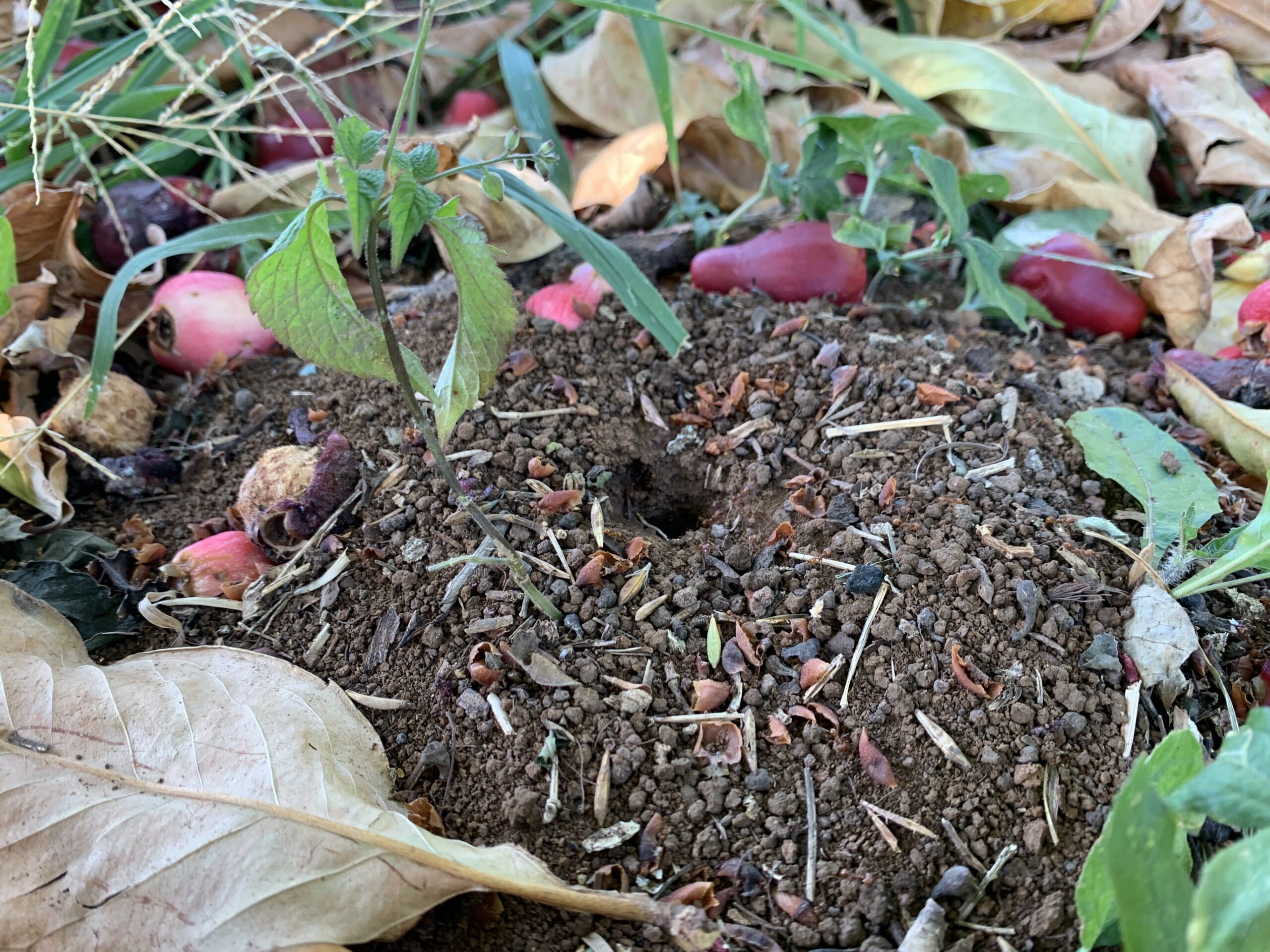 I couldn’t quite make out the trail and where it led to with all the dead leaves on the ground, but I didn’t see them hauling any leaves back to the hill so I can assume they weren’t attacking any other trees, hopefully!