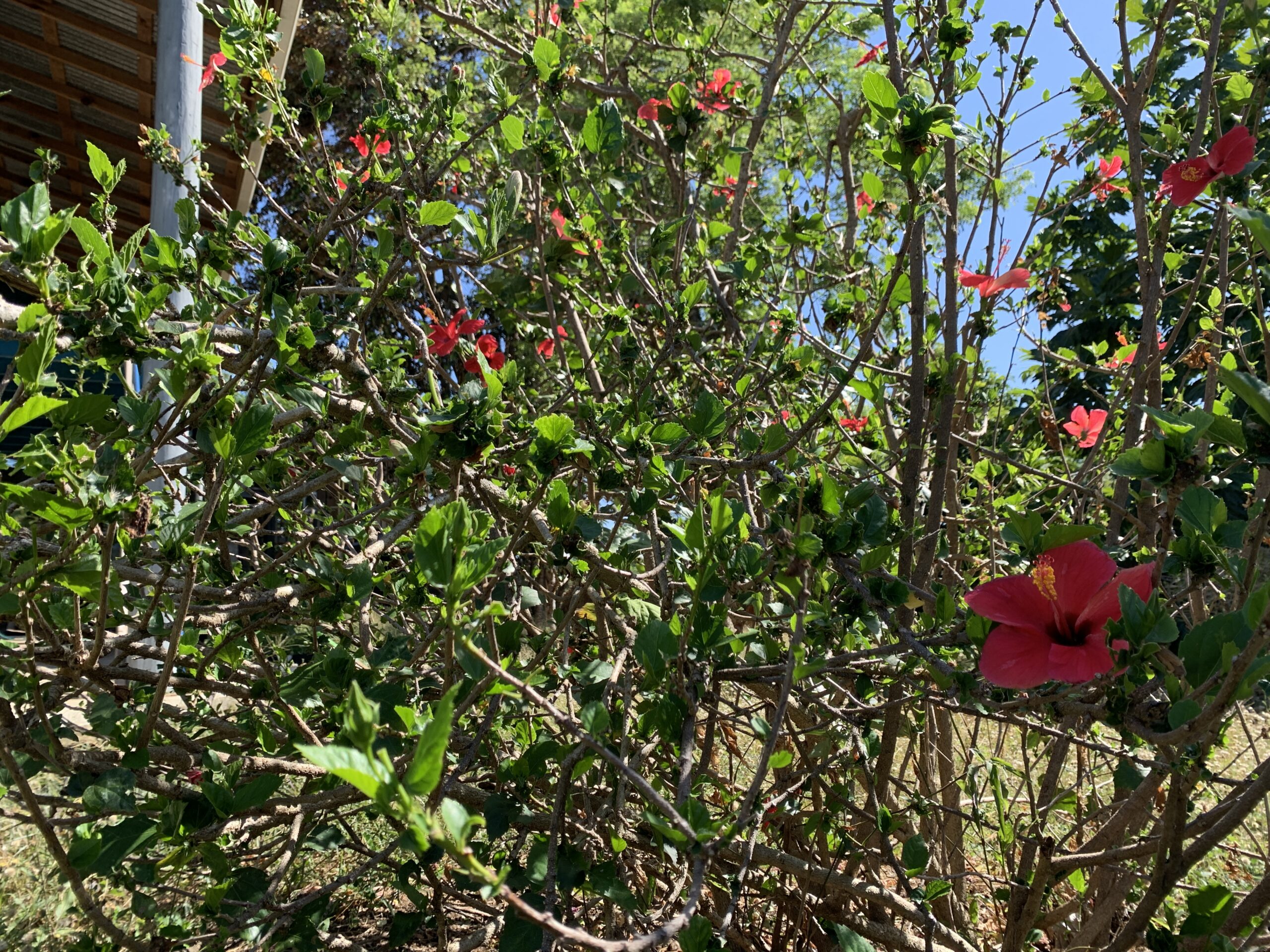 Now onto the Hibiscus flower bush! Same as the Crape Jasmine, where last week it had barely any flowers, now its sporting a healthy bunch of them!