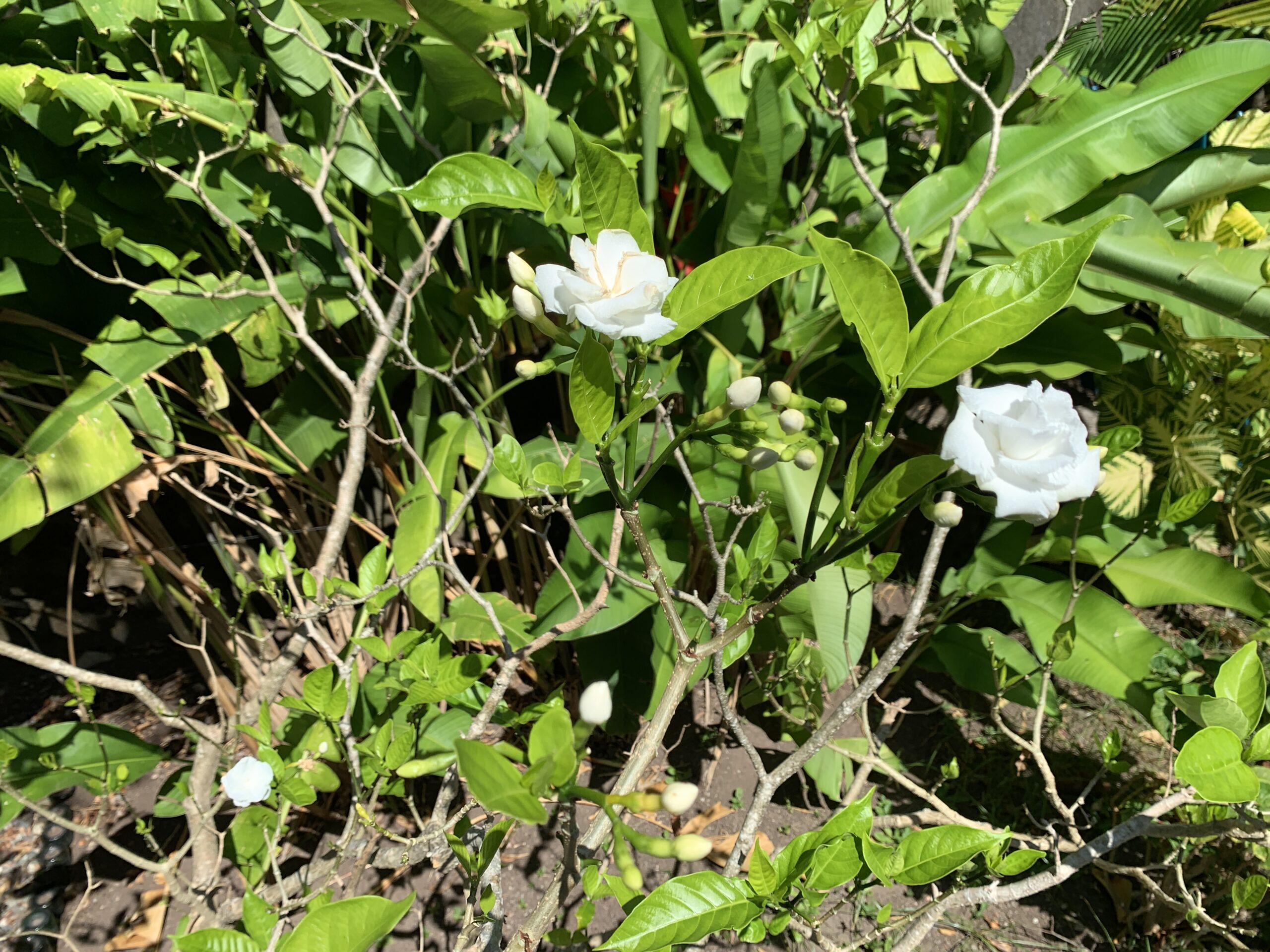 Lets start with the tree in front of the office. Just recently found out it’s a tree called Tabernaemontana divaricata, also known as crape jasmine, which is much easier to pronounce so we will stick with that name.